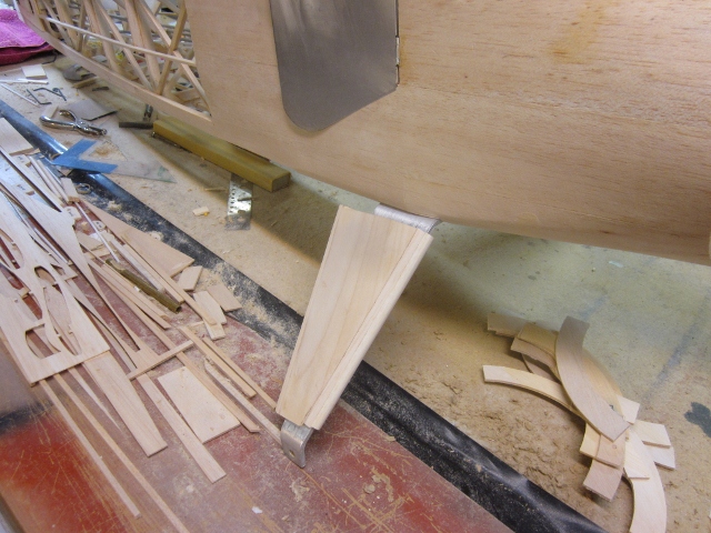 Here's the left LG strutwith the plywood outer fairing skin in place. The fairings inside and outside faces of each strut are the same.